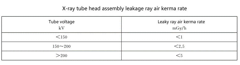 4. The X-ray device under the rated working conditions, the ray ray kinetic energy rate at 1 m from the X-ray tube focus should meet the requirements of the following table.